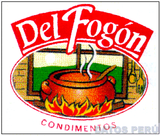 LA ETIQUETA CON LA DENOMINACION DEL FOGON ESCRITAS SOBRE UNA BANDA Y LA FIGURA DE FORMA OVOIDAL CONTENIENDO UNA OLLA DE BARRO EN EL FUEGO, EN LA PARTE POSTERIOR SE APRECIA UNA VENTANA, AL LADO DE LA MISMA UNA CUCHARA Y UN TENEDOR, TODO EN LOS COLORES, ROJO, BLANCO, VERDE, AMARILLO, MARRON, ANARANJADO, CONFORME AL MODELO ADJUNTO,