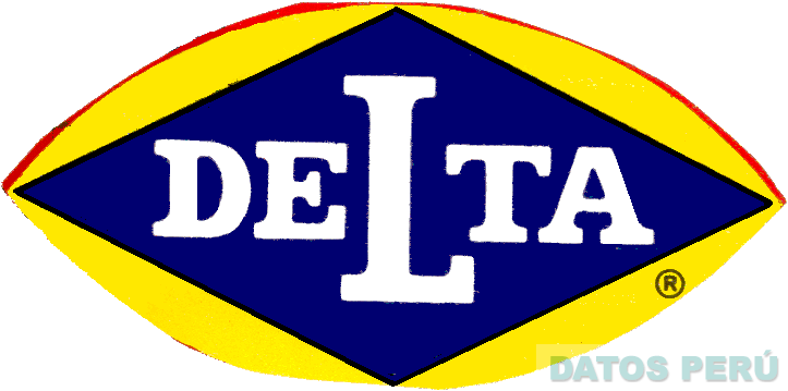 La etiqueta ovoide con un cuadrilátero que contiene la denominación DELTA, en la combinación de colores amarillo, azul y blanco, conforme al modelo adjunto