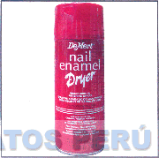 La etiqueta conformada por la denominación DEMERT NAIL ENAMEL DRYER escrita en letras características, tres líneas y frases alusivas al producto (sin reivindicar), todo dentro de la figura estilizada de un envase, al interior de una figura cuadrangular y en la combinación de colores fucsia, rojo en distintas tonalidades y blanco; conforme al modelo adjunto