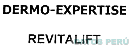 El logotipo conformado por la denominación DERMO-EXPERTISE REVITALIFT escrita en letras características; conforme al modelo adjunto.