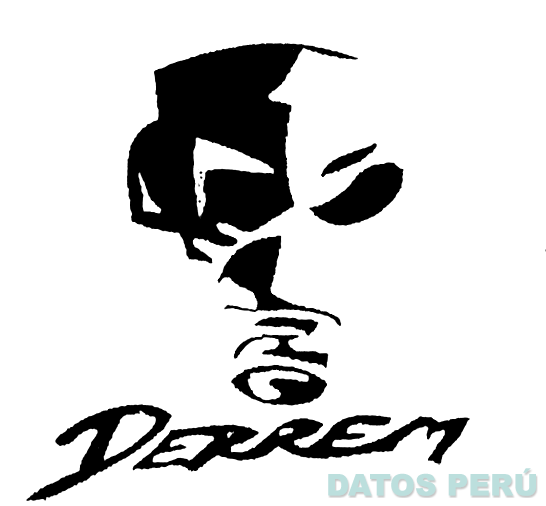 El logotipo conformado por la denominación DERREM escrita en letras características y en la parte superior la representación estilizada de un rostro, en los colores blanco y negro; conforme al modelo adjunto