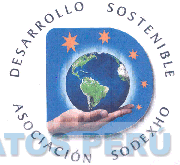 El logotipo conformado por la denominación DESARROLLO SOSTENIBLE ASOCIACIÓN SODEXHO escrita en letras características y la figura de una mano sosteniendo un mundo. Asimismo se aprecia cinco estrellas rodeando al mismo, todo en los colores negro, azul en diversas tonalidades, anaranjado, verde, blanco y marrón claro; conforme al modelo adjunto