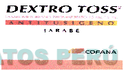 El logotipo conformado por la denominación DEXTRO TOSS escrita en letras características, seguida de la letra R dentro de un círculo (sin reivindicar), debajo la denominación ANTITUSIGENO escrita en letras características dentro de una figura rectangular y la denominación COFANA antecedida por una figura irregular y debajo una franja rectangular, todo en los colores negro, blanco, anaranjado y amarillo; conforme al modelo adjunto