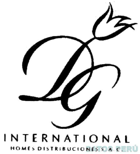 El logotipo conformado por las letras D y G estilizadas, las cuales se encuentran entrelazadas, asimismo se aprecia una flor que nace de la letra D; en la parte inferior se aprecia la denominación INTERNATIONAL y la frase HOMES DISTRIBUCIONES S.A.C. ambas escritas en letras características, todo en color negro; conforme al modelo adjunto
