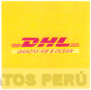 El logotipo conformado por la denominación DHL DANZAS AIR & OCEAN escrita en letras características de color rojo, con líneas paralelas horizontales de color rojo y blanco, todo sobre un cuadrado color amarillo; conforme al modelo adjunto