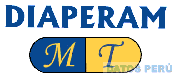 El logotipo conformado por la denominación DIAPERAM escrita en letras características, y la representación estilizada de una cápsula con las letras M T, en los colores azul, amarillo y negro; conforme al modelo adjunto