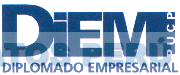 La denominación DIEM escrita en letras características y adyacente a la letra M se encuentra la denominación PUCP en forma vertical y en la parte inferior, se encuentra la denominación DIPLOMADO EMPRESARIAL, en los colores azul y blanco; conforme al modelo adjunto