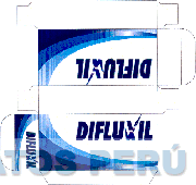La denominación DIFLUXIL y empaque (se reivindican colores), conforme al modelo