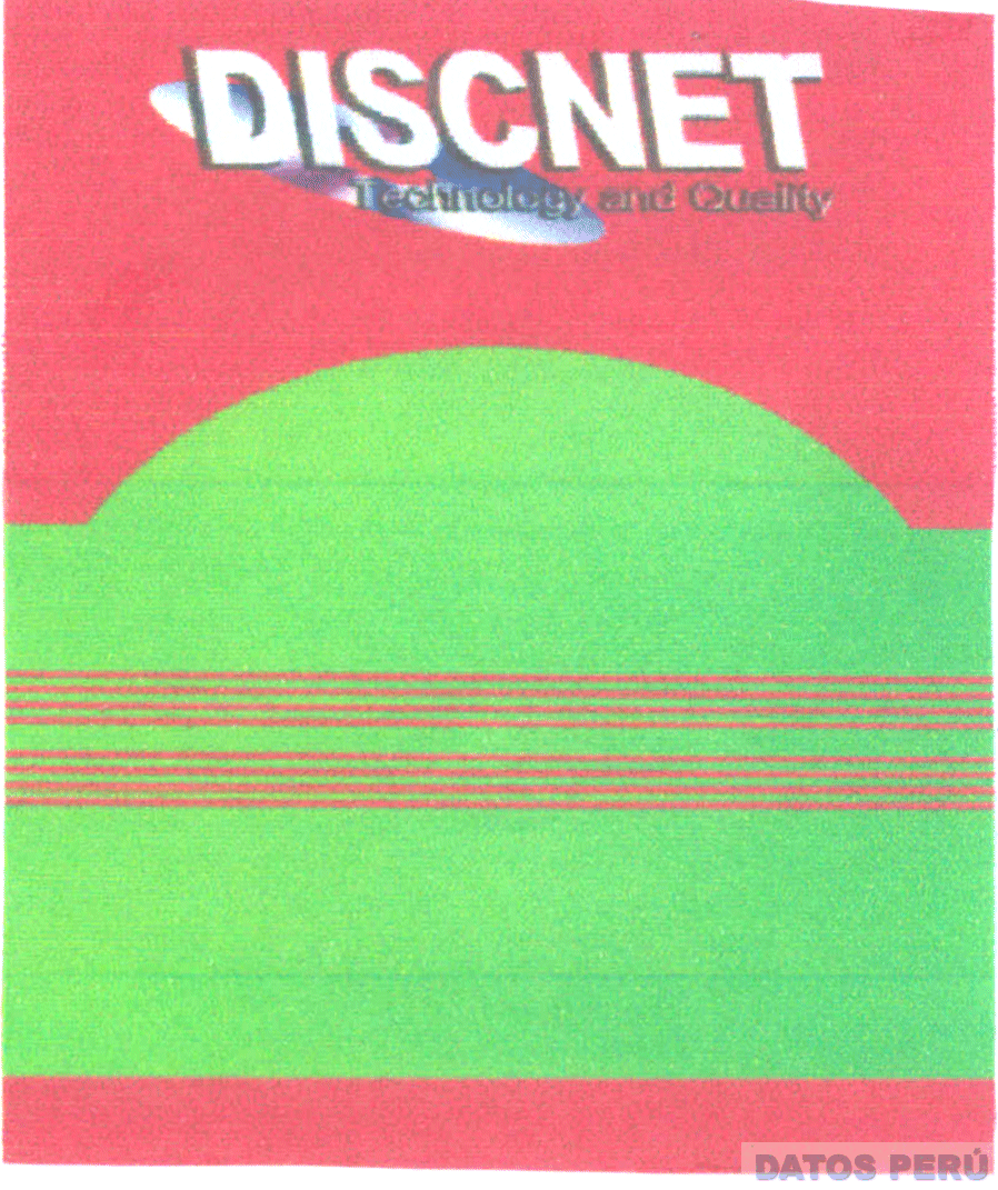 La denominación DISCNET TECHNOLOGY AND QUALITY y logotipo (se reivindican colores), conforme al modelo