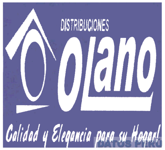 El logotipo conformado por la denominación DISTRIBUCIONES OLANO escrita en letras características y la frase CALIDAD Y ELEGANCIA PARA SU HOGAR (sin reivindicar) escrita en letras características; en el extremo izquierdo se aprecia una figura ovalada y una figura irregular y en la parte inferior una línea; todo en los colores azul y blanco; conforme al modelo adjunto