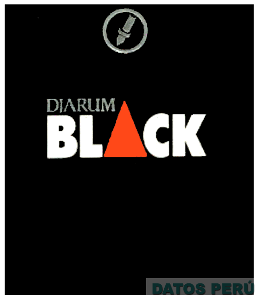 LA ETIQUETA CON LA DENOMINACION DJARUM BLACK ESCRITA EN LETRAS CARACTERISTICAS, SIENDO LA LETRA A DE BLACK REPRESENTADA COMO UN TRIANGULO DE COLOR ROJO Y SUS DEMAS LETRAS DE COLOR BLANCO Y DJARUM Y EL EMBLEMA CIRCULAR QUE APARECE ENCIMA DE TAL DENOMINACION EN COLOR GRIS, TODO SOBRE UN FONDO DE COLOR NEGRO, CONFORME AL FACSIMIL ADJUNTO