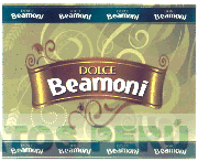 El logotipo conformado por la denominación DOLCE BEAMONI escrita en letras características doradas y blancas dentro de un pergamino dorado en distintas tonalidades, fondo verde en degrade con diseño de espigas, listones en la parte superior e inferior con reproducciones de la palabra DOLCE BEAMONI escrita en letras características blancas y doradas; conforme al modelo adjunto