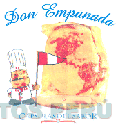 El logotipo conformado por la denominación DON EMPANADA CAPSULAS DEL SABOR y el diseño de una empanada que contiene la silueta estilizada de América simulando su tostado y la figura de un chef en cuyo gorro y mandil se aprecia la representación estilizada de la bandera del Perú (sin reivindicar) y cuya cara es una empanada estilizada llevando en una de sus manos un gallardete triangular que contiene en la parte superior la representación estilizada de la bandera del Perú (sin reivindicar); en la parte inferior se aprecia el diseño de una orla, todo en colores blanco, anaranjado en diversas tonalidades, rojo, negro y azul; conforme al modelo adjunto