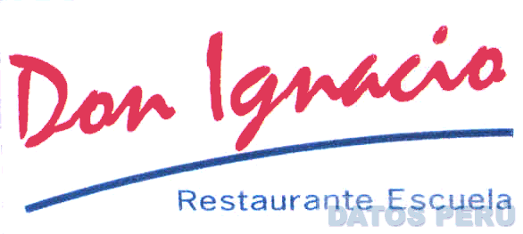 El logotipo conformado por la denominación DON IGNACIO escrita en letras características de color rojo sobre una línea curva de color azul, y en la parte inferior derecha de la línea curva se aprecia la frase RESTAURANTE ESCUELA escrita en letras características de color azul; conforme al modelo adjunto