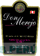 La etiqueta conformada por la denominación DON MEREJO escrita en letras características en color blanco, en la parte superior se aprecia el diseño de un sello conformado por dos tinajas, racimos de uvas y líneas que se asemejan a rayos solares, alrededor la denominación CASERIO PONGO DE LOS UCHUYA y en la parte inferior demás leyendas alusivas al producto, todo en los colores rojo, dorado, blanco y negro; conforme al modelo adjunto