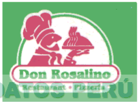 El logotipo constituido por la denominación DON ROSALINO y la figura estilizada de un cocinero con gorro y corbata, portando una bandeja de comida, en los colores verde, rojo y blanco, según modelo adjunto