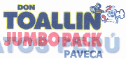 El logotipo conformado por la denominación DON TOALLIN escrita en letras características de color azul oscuro y borde amarillo; al lado derecho superior se aprecia la representación caricaturizada de un rollo de papel toalla con ojos, boca y un gorro de cheff de color blanco y bordes azules, con manos y piernas anaranjadas, con zapatillas y en la mano derecha tiene una cuchara de color amarillo con blanco; debajo se aprecia la denominación JUMBO PACK escrita en letras características de color rojo y en la parte inferior y al extremo derecho, la denominación PAVECA escrita en letras características en color azul claro; conforme al modelo adjunto