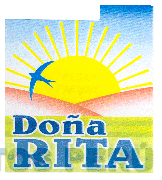 La denominación DOÑA RITA escrita en letras características y el diseño estilizado de un paisaje en donde se aprecia el pasto, dos cerros, el sol y un ave; en los colores amarillo, azul, verde y marrón; conforme al modelo adjunto