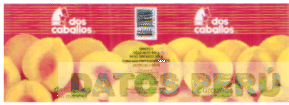UNA ETIQUETA RECTANGULAR EN CUYA PARTE SUPERIOR HAY DOS SILUETAS, DE CABEZA DE CABALLO, SEMISUPERPUESTAS, Y LA EXPRESION DOS CABALLOS; Y EN LA PARTE INFERIOR A TODO LO LARGO DE LA ETIQUETA, HAY FIGURA DE DURAZNOS ENTEROS Y EN MITADES, DE COLOR AMARILLO, Y DEMAS DENOMINACIONES ALUSIVAS AL PRODUCTO; TODO ESTO EN