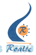 El logotipo conformado por la denominación ROALTE escrita en letras características; una figura irregular de forma ondulante, una figura circular conteniendo la letra R escrita en letras características; seis figuras circulares pequeñas y una línea horizontal; todo en los colores anaranjado, blanco y azul; conforme al modelo adjunto.