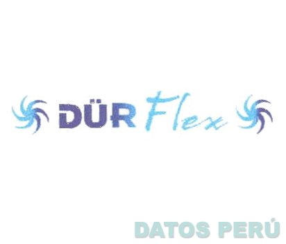 La denominación DÜRFLEX escrita en letras características, a los extremos se aprecian aspas de remolino, todo en los colores celeste y azul en degradé; conforme al modelo adjunto