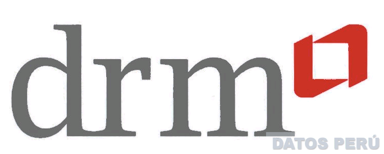 El logotipo conformado por las letras D, R y M escritas en forma característica de color gris, y a su costado se aprecia un isotipo conformado por dos figuras irregulares de color rojo; conforme al modelo adjunto