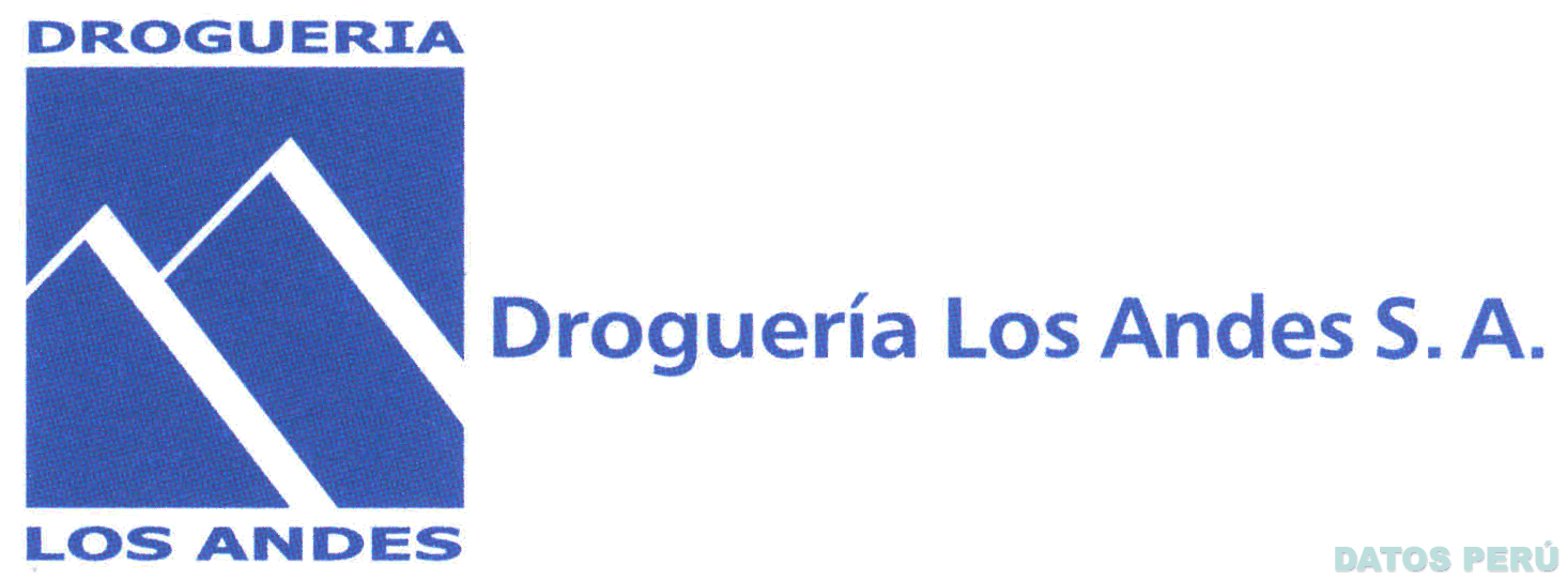 La denominación DROGUERÍA LOS ANDES S.A. escrita en letras características al lado derecho una figura cuadrangular en cuyo interior se aprecia la representación de dos montañas y sobre ésta se aprecia el término DROGUERIA escrito en letras características y debajo el término LOS ANDES escrito en letras características; todo en los colores blanco y azul; conforme al modelo adjunto