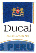 La etiqueta conformada por la denominación DUCAL AMERICAN BLEND escrita en letras características, una figura irregular en la parte superior que presenta dos leones rampantes apoyados en una base y entre las cuales se aprecia un escudo que presenta la letra D escrita en forma característica y dos líneas rectas verticales a ambos lados, debajo se aprecia una figura irregular y una línea curva, todo en la combinación de colores dorado, azul, rojo, blanco y negro; conforme al modelo adjunto