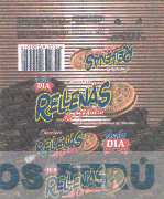 La etiqueta conformada por la denominación DULCE DÍA CHOCOLATE RELLENAS... DE CREMA! escrita en letras características y la figura de barras de chocolate alineadas en la parte inferior de la etiqueta y el diseño de cuatro galletas rellenas distribuidas en la parte central, la parte superior presenta líneas horizontales que van de color marrón oscuro al inicio atenuándose éste en la parte central y volviendo a subir el tono al final de la línea, todo en la combinación de colores marrón oscuro, marrón claro, blanco, rojo, azul y amarillo; conforme al modelo adjunto