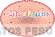 El logotipo conformado por la denominación DULCES PEQUITAS escrita en letras características y las figuras de cuadrados pequeños, todo dentro de una figura ovalada con doble marco; todo en la combinación de colores anaranjado, marrón, negro, fucsia, amarillo, verde, azul y morado; conforme al modelo adjunto