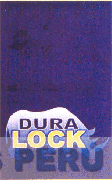 La etiqueta rectangular que contiene la denominación DURALOCK escrita en letras características, acompañada de la figura estilizada de un rinoceronte, en los colores azul en diversas tonalidades, amarillo, blanco y morado en distintas tonalidades; conforme al modelo adjunto
