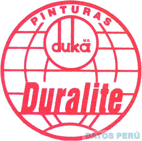 LA DENOMINACION PINTURAS DUKA DURALITE ESCRITA EN LETRAS CARACTERISTICAS, DENTRO DE UNA FIGURA CIRCULAR, TODO EN COLOR ROJO; CONFORME AL MODELO ADJUNTO