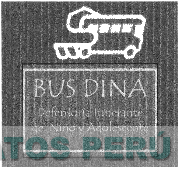 El logotipo conformado por la denominación BUS DINA DEFENSORÍA ITINERANTE DEL NIÑO Y ADOLESCENTE escrita en letras características contenida en una figura cuadrangular y la representación estilizada de un bus sostenido por una mano, conforme al modelo adjunto.