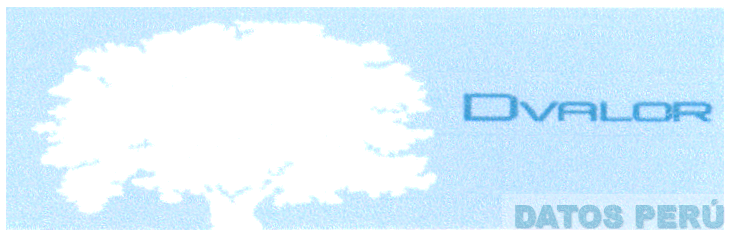 El logotipo conformado por la denominación DVALOR escrita en letras características y figura estilizada de un árbol, todo en los colores celeste, azul y blanco; conforme al modelo adjunto