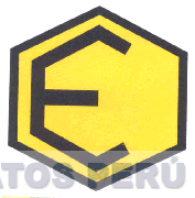 El logotipo conformado por la letra E escrita en letras características de color negro dentro de una figura de color negro de forma hexagonal, con fondo de color amarillo; conforme al modelo adjunto