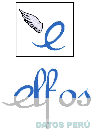 La denominación ELFOS escrita en letras características y la representación de la letra E estilizada y la figura de un ala dentro de un cuadrado, en los colores negro, azul y gris; conforme al modelo adjunto