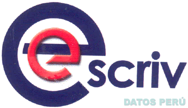 El logotipo conformada por la denominación ESCRIV escrita en letras características, minúsculas en color azul, apreciándose que al interior de la letra E se ha insertado otra letra E en color rojo; conforme al modelo adjunto