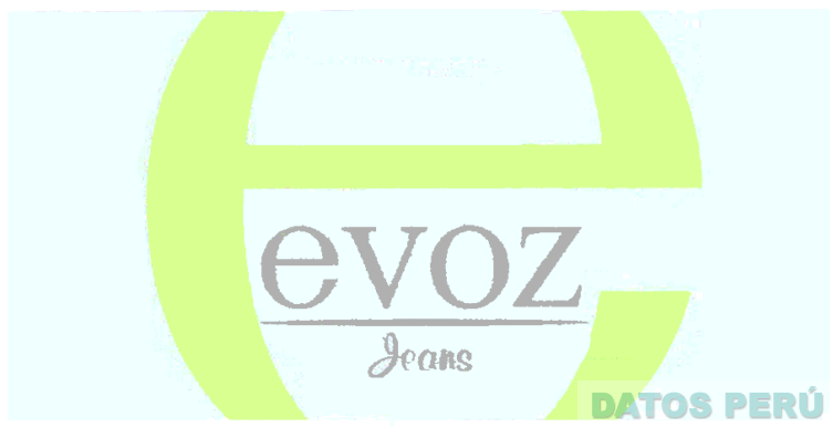 El logotipo conformado por la denominación EVOZ JEANS y una línea horizontal en el centro; asimismo, se aprecia una letra R dentro de un círculo (sin reivindicar); en el fondo se aprecia la letra E escrita en forma característica; en los colores verde en distintas tonalidades y gris; conforme al modelo adjunto