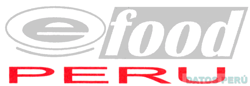 El logotipo conformado por la denominación E FOOD PERU escrita en letras características, donde la letra E que antecede al término FOOD se encuentra dentro de una figura ovalada, debajo de la cual se aprecia una línea curva; asimismo, la palabra FOOD está ubicada dentro de una figura rectangular; todo en los colores gris y rojo; conforme al modelo adjunto