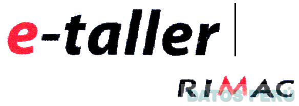 El logotipo conformado por las palabras E-TALLER RIMAC todo en colores negro (pantone PMS-433) y rojo (pantone-PMS 1797); conforme al modelo adjunto