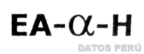 El logotipo conformado por las letras E y A seguidas de un guión y de la letra griega alfa, seguida a su vez de otro guión y de la letra H; conforme al modelo adjunto