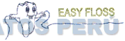 El logotipo conformado por la denominación EASY FLOSS escrita en letras características y antecedida por la representación caricaturizada de un diente sonriente que coge un hilo, en los colores azul, verde, blanco y negro; conforme al modelo adjunto