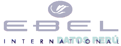 La denominación EBEL INTERNATIONAL escrita en caracteres estilizados en color violeta en cuya parte superior se encuentra el diseño de una flor blanca contenida dentro de una figura ovalada también en color violeta, conforme al modelo adjunto