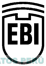 El logotipo conformado por la denominación EBI escrita en letras características dentro del diseño de un escudo, y en la parte superior dos líneas curvadas, sin reivindicar colores; conforme al modelo adjunto