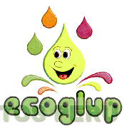El logotipo conformado por la denominación ECOGLUP escrita en letras características, en la parte superior la figura humanizada de una gota y siete figuras irregulares, en los colores anaranjado, morado, verde en distintas tonalidades, rosado, rojo, negro y amarillo; conforme al modelo adjunto