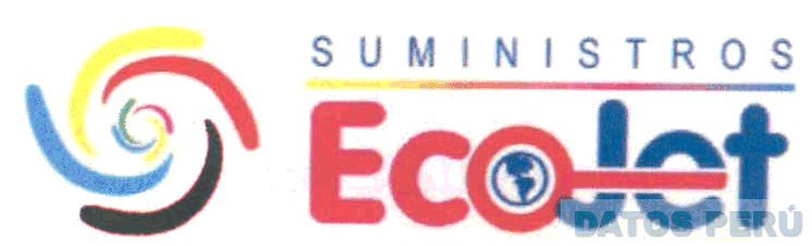 El logotipo conformado por la denominación ECOJET SUMINISTROS escrita en letras características, al lado izquierdo se aprecia una figura caprichosa formada por pinceladas en forma espiralada, la letra O de la palabra ECO contiene en su interior la figura del mundo y en la parte superior se aprecia una línea horizontal sobre la cual se aprecia la palabra SUMINISTRO escrita en letras características, todo en los colores negro, azul, amarillo, rojo, verde, celeste y fucsia; conforme al modelo adjunto