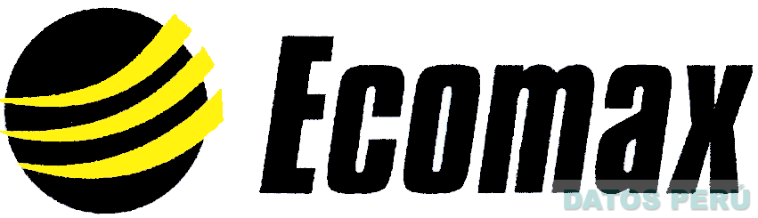 El logotipo conformado por la denominación ECOMAX escrita en letras características al extremo una figura circular sobre la cual se aprecian tres franjas dispuestas en forma ascendente, todo en la combinación de colores negro y amarillo; conforme al modelo adjunto