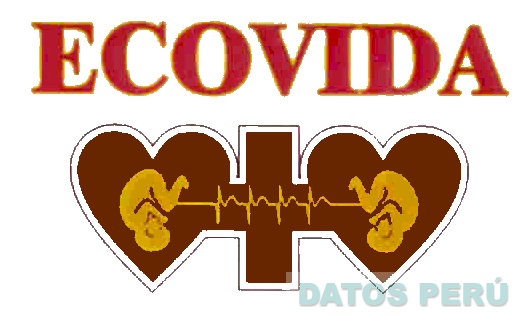 La denominación ECOVIDA escrita en letras características junto con el logotipo característico de dos corazones que presentan en su interior la figura de dos bebés y que se encuentran unidos por una cruz estilizada, todo en los colores rojo y marrón; conforme al modelo adjunto