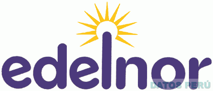El logotipo conformado por la denominación EDELNOR escrita en letras características, en color azul pantone 281C, y el diseño estilizado de un sol sobre la letra L, en color amarillo pantone 123C; conforme al modelo adjunto