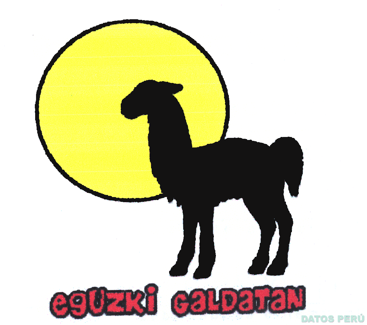 La denominación EGUZKI GALDATAN y logotipo (se reivindican colores), conforme al modelo